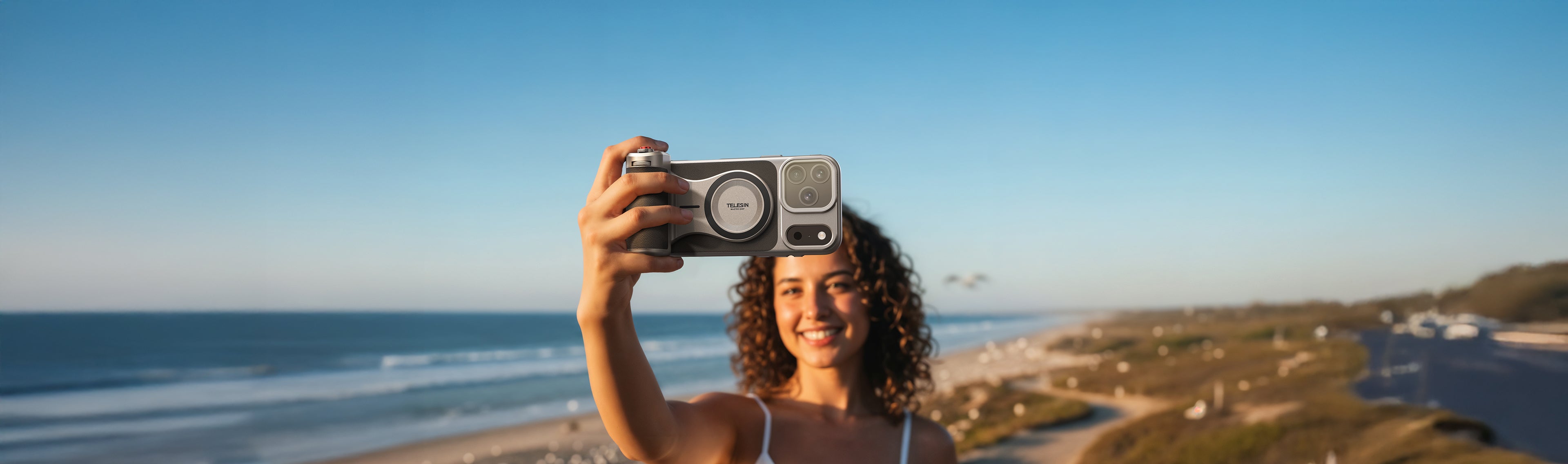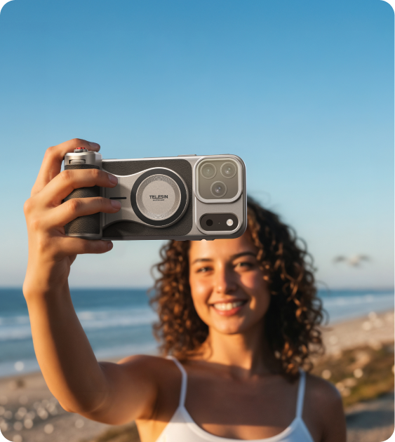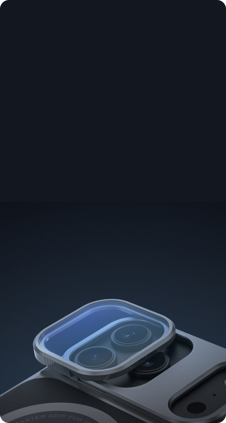 The unique atmosphere and post-production flexibility that physical filters offer are irresistible to professional photographers — and impossible to replicate with algorithms. On the TELESIN Master Grip, the upper section of the case features a CNC-machined metal lens module protector that also doubles as a magnetic filter mount. Three high-performance magnets hold filters securely in place, while the design itself increases surface area for heat dissipation. The result is fast, precise, and tool-free filter changes. Current options include CPL to cut reflections and VND for smooth long-exposure effects, with more filters coming soon — expanding the creative boundaries of what your iPhone can capture.